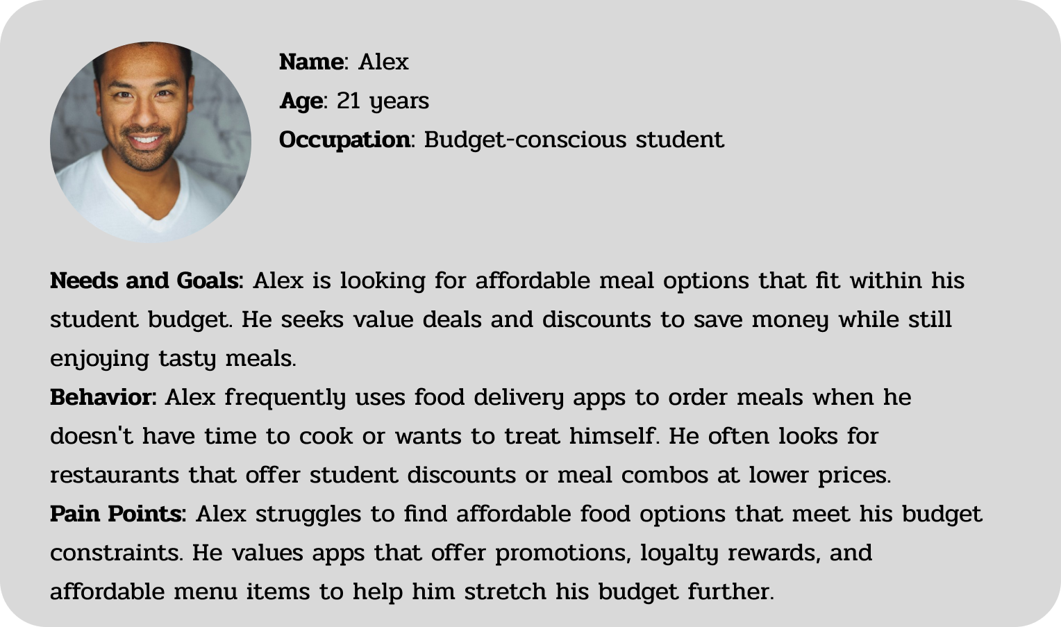 I created an experience map to help me see the big picture of Michael’s journey and gain a deeper understanding of his needs and pain points. Through this process, I identified the point of intervention: when Michael struggled to find meal options that aligned with his fitness goals while managing his busy schedule. The overwhelming nature of balancing work, workouts, and meal preparation led to a reliance on less healthy convenience foods. This not only hindered his progress but also caused frustration and dissatisfaction with his routine. Addressing this challenge provided a clear opportunity to design a solution tailored to his needs, helping him achieve his health goals without compromising his time or energy.